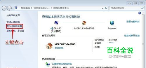 在打开的网络共享中心窗口,我们左键点击:更改适配器设置;