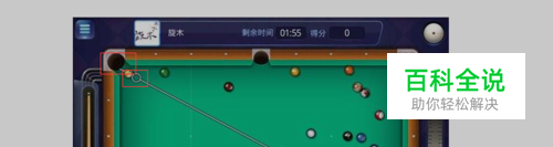 中球袋直线擦边法,要是球刚好和中球袋的两个球袋三点一线,就可以采用此法,直接在技巧线的延伸线垂直对准球袋即可