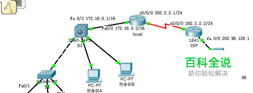 192.168..32,0 用来当业务部门A 192.168.64.0 用来当业务部门B 192.168.160.0 用来当财务部门的子网 S2是一台Multilayer Switch,主机名M_Switch,也就是具有三层路由的交换机,S_switch是普通的二层交换机。Local(LocalRoute)是局域网的边界路由器,ISP是外部的路由器,连接ISP当做互联网。 如图所示,配置计算机