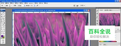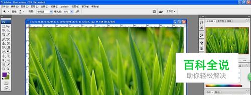 打开图片,可以看到,小编选择了一张几乎全是绿色的环保,护眼桌面壁纸型的图片, 下面,我们一步一步把绿色草地变成紫色的草地。