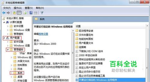 依次展开用户配置--管理模板--系统,双击右侧界面中的不要运行指定的Windows指定程序。