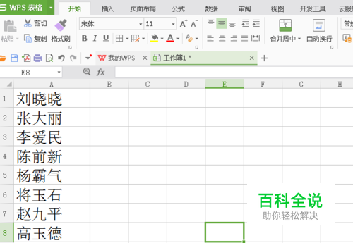 本例中,我们的表格已存在一列有数据的列,如姓名,我们现需要的效果是把“姓”和“名”分别两例,如下图:(如有同名,纯属巧合)。