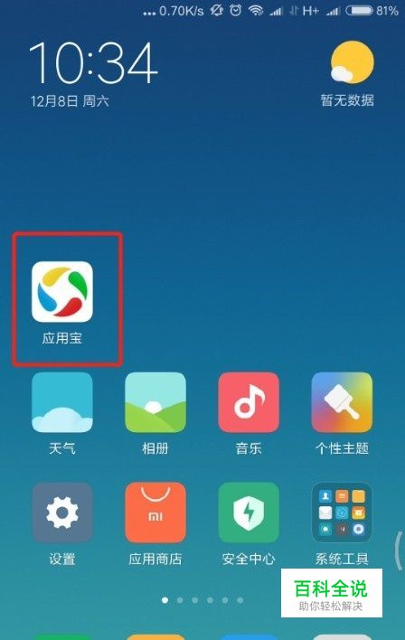 在手机中打开应用宝。