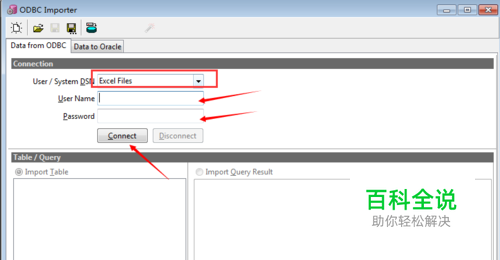 选择导入文件的类型,这里是excel文件,所以选择Excel Files 输入连接数据库的用户名和密码 点击Connect