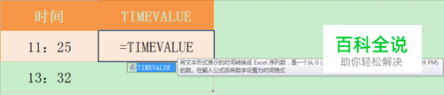 Excel TIMEVALUE函数的使用方法