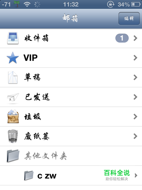 打开iphone自带邮箱,如图所示,如果已经绑定了邮箱号,就会显示出收件箱已发送等等。
