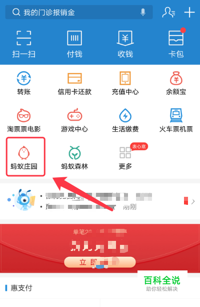 首先,打开手机中的支付宝APP,找到【蚂蚁庄园】的玩法入口