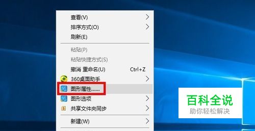 第一步:我们右键点击桌面,选择图形属性选项。
