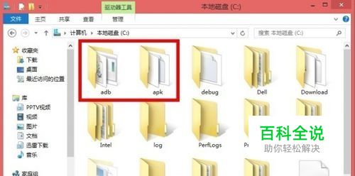 下载ADB工具压缩包和当贝市场APK(ADB工具包直接解压到C盘根目录,里边包括两个2文件分别为“adb”"apk") 注意:“APK” 这个空文件夹,是放你要安装的APP(名字尽量为英文)。