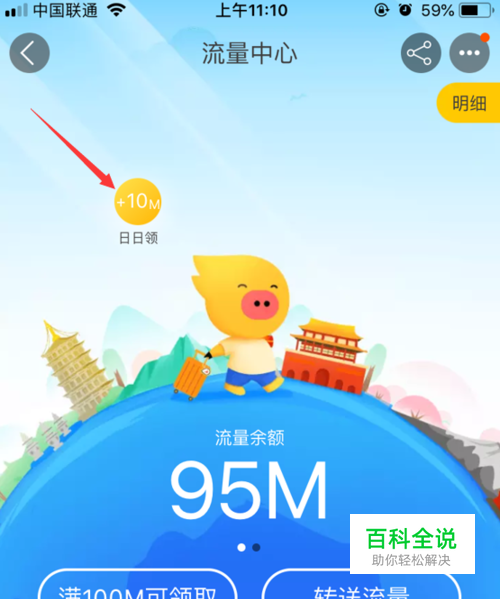 现在每天都可以领取10M流量,我们点击圆圈即可领取