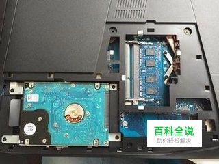 然后就需要将原来里边的机械硬盘小心的取出来,接口很小,一定要小心拔掉硬盘上的数据线插头,将笔记本原来机械硬盘慢慢取出。