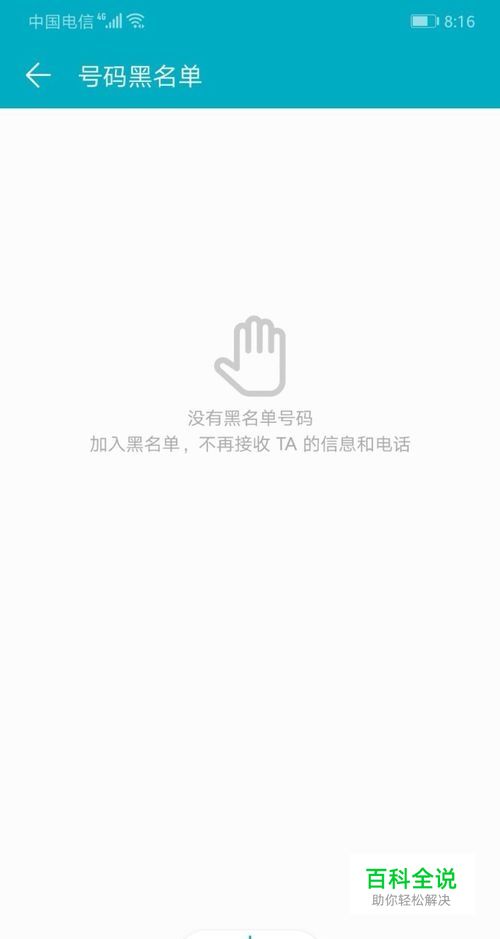 进入号码黑名单界面,就可以查看黑名单了。因为我的手机没有黑名单,如果有黑名单号码,就可以查看到具体的加入黑名单的号码了。