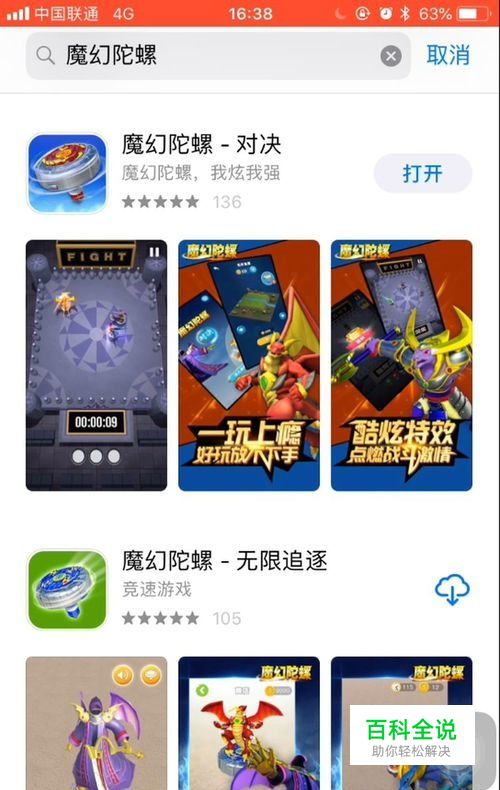 打开手机上的App Store,点击搜索按钮,然后输入:魔幻陀螺-对决,确定,出现游戏,点击下载安装。