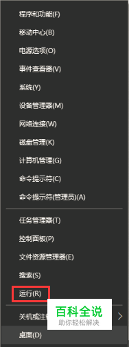 首先可以鼠标右键点击左下方的win10图标,弹出下拉菜单,在下拉菜单里找到【运行】功能选项,如下图所示。