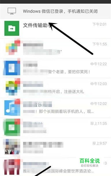 点击打开手机微信,在弹出的手机微信首页里我们点击打开文件传输助手,此时我们可以看到我们刚才发送的消息,我们将此消息复制。