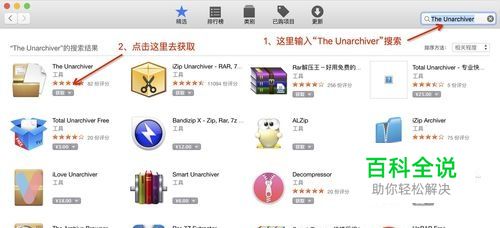 打开App Store,在搜索框中输入“The Unarchiver”,具体操作如下图所示: