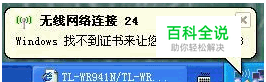 由于无线网络设置了加密验证,造成有时在无线连接时,无线网卡提示"windows找不到证书来让您登陆到网络"。如下图