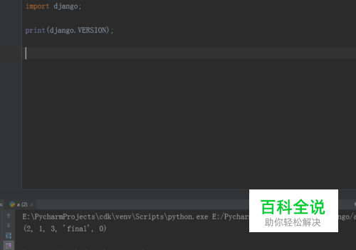 第五步,在pycharm工具中安装好了django,新建一个python文件,导入django包,调用版本方法查版本,如下图所示: