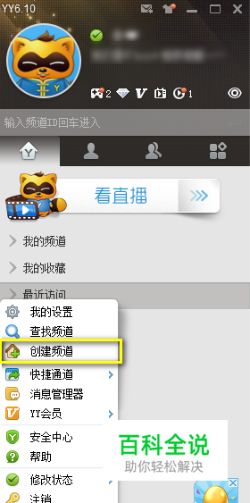 怎么创建YY频道呢??这个版本是6.10;更新日期:2013.10.17