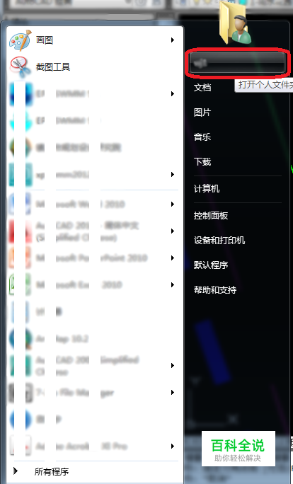 在开始菜单内打开用户文件夹。