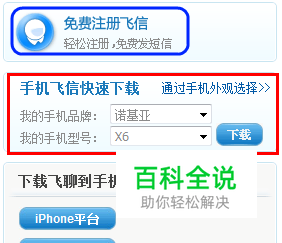 首先我们需要从飞信官网上面选择适合自己手机的飞信版本下载。手机飞信页面右侧有快速下载的通道。(因为登录飞信是要用帐号的,如果你还没有帐号的话可以先免费注册一个帐号,至于怎么注册帐号这里就不详细说明了,根据提示填写相关内容即可)
