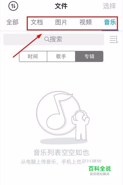 按照文件类型查找: 首先可以按照文件类型查找,我们上传文件以后,系统会自动根据文件后缀名将其分类,我们只需在微云首页点击"文件"就可以看到这些常用的分类了,有图片、音乐等,如图;