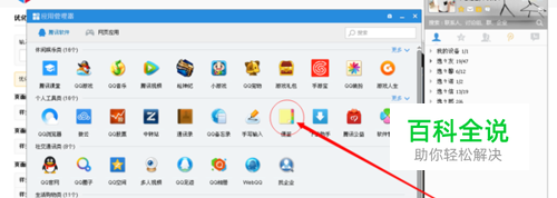 首先就是要找到QQ便签在什么位置,调出来;打开QQ界面,右下角四个小方框,点击出来软件管理器;找到便签;