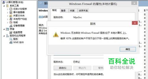 防火墙服务无法开启,报错信息:Windows无法启动windows firewall服务(位于 本地计算机 上) 错误1079:此服务的账户不同于运行于同一进程上的其他服务的账户。 防火墙无法打开,将导致很多问题的衍生,比如:Windows 8无法升级程序,无法从应用商店里下载安装程序,还有远程桌面无法访问,本人就曾遇见过因为防火墙启动失败,致使WINDOWS 2008 服务器,远程桌面连不上的。WIN8 与 WIN 2008 类似一样处理