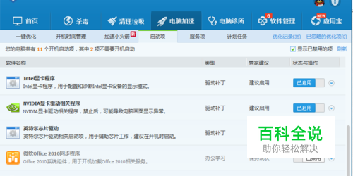 在电脑加速里面有个服务项目,你可以禁止一些不用的软件,在开机的时候启动