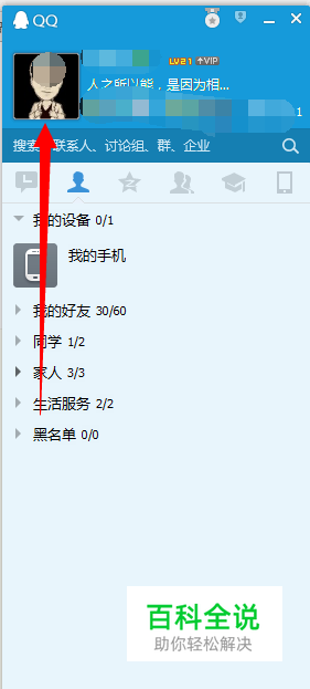 登录成功,进入主界面,点击上方 【QQ头像】,进入个人资料界面