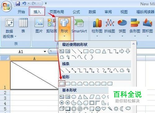 具体步骤是:在“插入”菜单栏里选择“形状”,根据自己需要选择一个形状,我选择的是“矩形”。