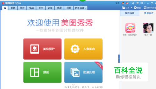 打开美图秀秀,点击”美化图片“。