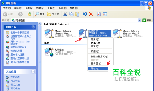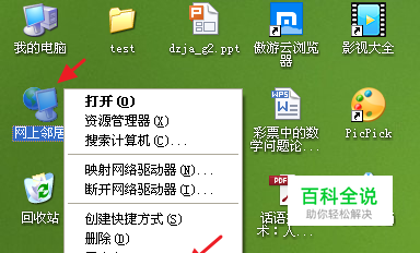 右键单击“网上邻居”,在弹出的下拉菜单选项中,选择“属性”,打开“网络连接”。
