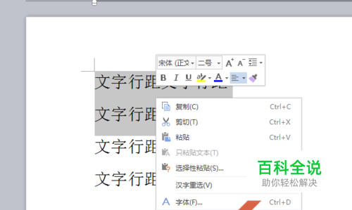 先框选要调整行距的文字范围。