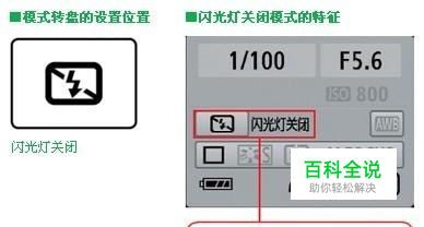 首先把模式转盘的位置设成闪光灯关闭模式,当不想让闪光灯闪光时这是让人放心使用的拍摄模式