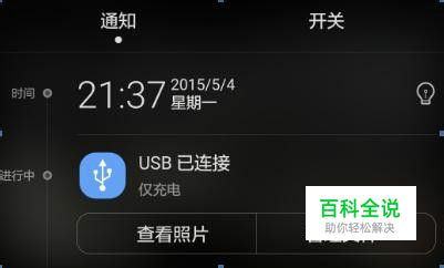确认下拉通知栏里USB已连接下方是否显示仅充电,如果是,则点击管理文件即可。