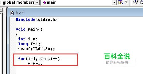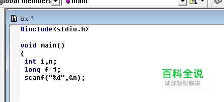 首先,我们输入头文件,然后定义两个整型变量和一个长整型变量,并用scanf函数请求用户输入需要求阶乘的数字。
