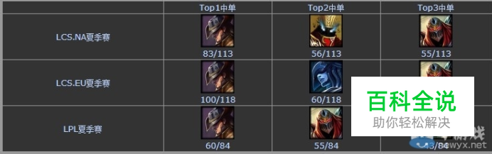 S4赛季的到来让整个游戏发生了重大的变化,随着版本的改变,中单位置的英雄也出现了许多重大变化,下面请随我一起来看看S3-S4赛季中单的生态变化吧! S3赛季热门中单回顾 回顾全年,中单位置是变化最大的位置之一,曾经众多主流中单英雄逐渐边缘化。 春季 S3赛季开启不久后,版本中单延续了S2时期的中单英雄,当时包括IPL5大热的卡牌、皎月等英雄依旧占据了主力中单的位置,小编摘录了欧洲LCS春季赛、北美LCS春季赛、2012-2013OGN冬季赛、2013OGN春季赛的中单数据以供参考。 PS.英雄头像下面的数据为该英雄出场数/总场数 S3赛季初期,因版本改动以及延续了S2时期的热门英雄,例如卡牌、死歌、天使等英雄都是S3赛季前期的中单王者,其出场率都达到了非常恐怖的数值,成为非Ban必选的存在。值得注意的是,在这一时期螳螂作为刺客型AD中单同样进入了当时的热门中单俱乐部,这也预示着之后刺客型中单的崛起。 夏季 进入夏季后中单形式出现了一些微弱的变化,不过这些变化却是之后刺客突进型中单主导中路的引子。 PS.英雄头像下面的数据为该英雄出场数/总场数 可以看到,S3赛季夏季时期,卡牌占据中路No1,各大赛区卡牌都成为出场率最高且Ban率最高的英雄,但相比前面春季而言,劫强势进入了热门中单,同时发条也开始跻身热门中单中,此外需要注意的是狐狸也呈现了崛起状态,虽然她当时还不是最热门的中单英雄。 S3世界总决赛 进入S3世界总决赛后,突进型中单开始大行其道,尤其以劫、狐狸最为突出,而劫已经跃然成为当时的第一中单,一起来看看详细数据吧! S3世界总决赛上了,除了发条之外几乎所有的中单英雄都是突进型、高爆发的中单,这也成为S3赛季中单的标志性特点,刺客型中单开始稳居S3赛季中单路。而这也一直延续到S3赛季后半段,一直到S4赛季的来临。 冬季 随着S3世界总决赛的结束,S3赛季也迈入了冬季,各大赛区的冬季联赛也纷纷开战,而对于版本来说却是变动最大的时刻,S4赛季的部分内容开始在这一阶段逐步上线,而S4赛季的改动也纷纷展示在大家的面前。而作为唯一一个跨赛季的联赛,OGN冬季赛无疑将是最好的借鉴。 进入冬季后,为了应对风靡全球的劫,豹女开始逐渐火爆起来,而显然,OGN对于豹女的经验更为充足,这与他们在春季赛时就多次使用豹女中单有关,此外S3赛季突脸型中单的酒桶也依旧稳居中单热门榜单,S4赛季的表现究竟如何非常值得期待。 S4季前赛热门中单 进入S4季前赛,随着S4的内容逐步上线,当下版本的特点依旧部分延续了S3赛季的中单,例如酒桶、豹女等依旧是版本热门中单英雄,对此我们可以参照下面外服最近一个月钻石组排位中单数据来看,PS.安妮目前定位多为辅助。 酒桶:早在S3世界总决赛时期,酒桶就频频亮相,不过相比当时最热门的劫与狐狸来说,酒桶显然还算不是中单霸主,不过随着版本的改动,酒桶已经跃居当前最热中单,无论是他的位移能力、清兵能力、团战能力还是控制能力在联盟中都是数一数二的,酒桶6级后大招的强行位移能力作用相当大,可以说目前是中单玩家必备英雄。