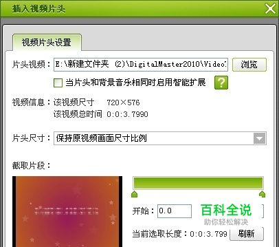 相册中插入视频,让相册动感十足 把平时拍下来的或网上下载的精彩视频插入相册视频中,让相册视频实现图片和视频的完美呈现,只需点击“插入视频片头”或“相片间插入视频短片”就可以做到了,很快速简单!! 还可以截取其中特殊含义的一段视频插入。