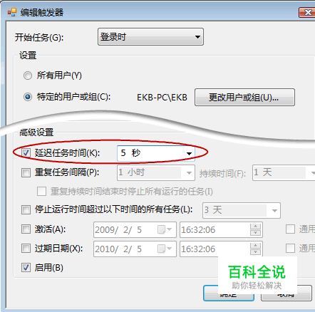 把延迟任务时间打上勾,在后面的框里输入 5 秒。