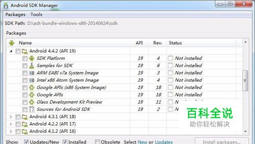 找到你的sdk已安装的最新的API版本,点击小三角,打开该API的详情。图中打开的是android4.4.2的API