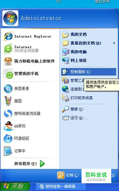 首先点击桌面左下角的“开始”按钮,在弹出的对话框中点选右边的“控制面板”