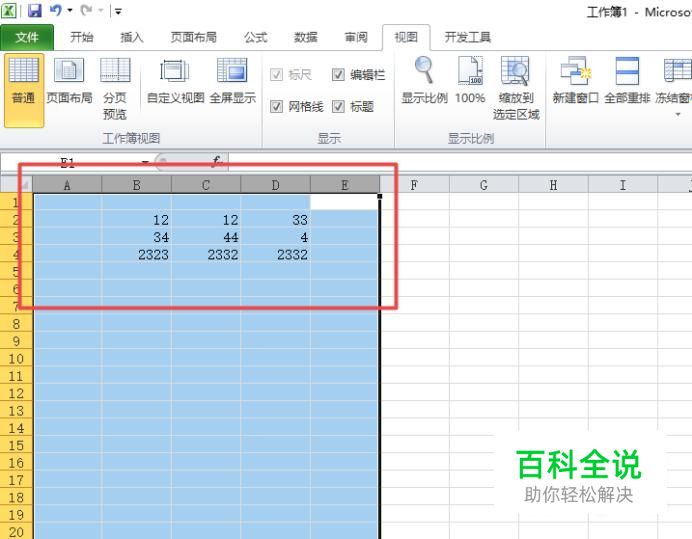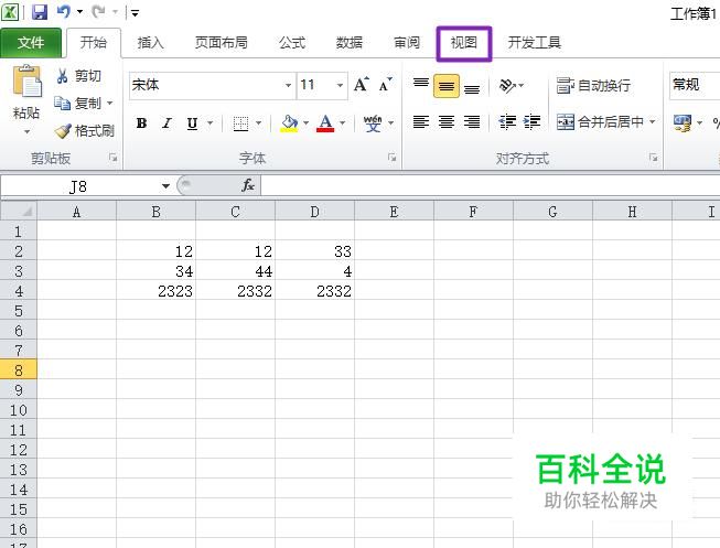 首先,我们打开我们电脑上面的excel,然后在表格中随意输入一些数字,这是为了演示看起来比较清楚,然后我们点击视图;