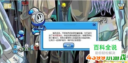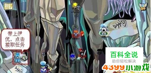 做任务之前,首先要带上精灵伊优(创建人物时,可以选择的水系精灵)。而且要跟随在玩家身边哦。做好准备之后,来到海洋星深水 区,点击左下角蓝色的赛尔或是它身边的小箱子接取任务。