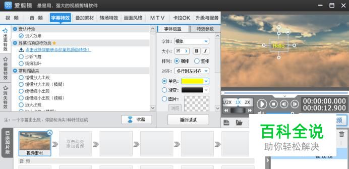 点击“特效参数”准备设置字幕的持续时间