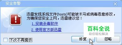 互联网上的木马和病毒很多,令人防不胜防。想到“Hosts劫持者”,通过一些极端的方法对系统的Hosts文件进行修改,使得用户的DNS解析重新定向到木马网站,进而在后台秘密窃取网络游戏玩家的帐户、密码等敏感信息,并将玩家信息发送到黑客指定的远程服务器上,给大家带来很大的损失。不过,迅雷作为最为流行的下载工具,已经提供了保护Hosts文件的功能,大家只要选中一个选项就可以了。 一、迅雷5.9 在迅雷5.9中选择“工具”→“配置”命令,再单击左侧“消息提示”标签,在右侧窗口中单击“更多消息提示”按钮,在打开的对话框中选中“Host文件检测提醒”复选框(如图1)。 图1 选中Host文件检测提醒复选框 之后,只要迅雷开启,如果发现Hosts文件被修改,会弹出如图2所示的窗口。单击“修复”按钮,即可修复Hosts文件。图3是修复前的Hosts文件,图4则是修复后的Hosts文件,可以看到其中的内容已经被修复。 图2 提示修复Hosts文件 图3 修复前Hosts文件 图4 修复后Hosts文件 二、迅雷7 选择“帮助”→“迅雷下载诊断工具”命令,如果检测到Host有问题,会在图5所示的窗口中看到(如图5)。单击“立即修复”即可修复完成。