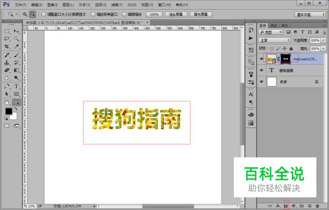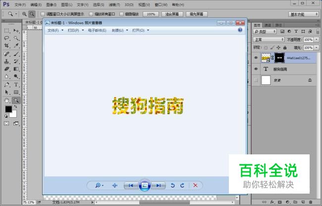 接下来,我们输入文字,小编就以搜狗指南为例给大家介绍一下吧,文字属性如图(最好选择粗一点的文字,这样效果比较明显)。