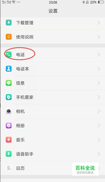 进入【设置】后,将选项往上拉,找到【电话】选项,点击进入