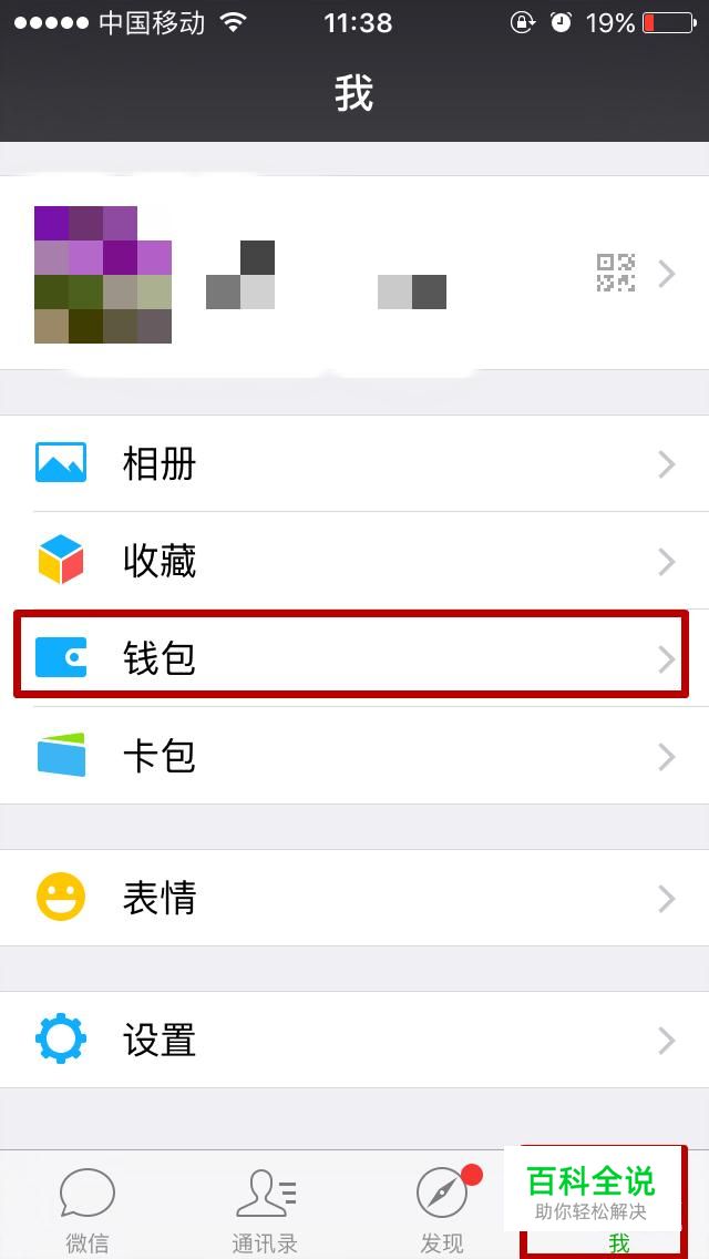 打开微信,点击下方的“我”,然后点击“钱包”;