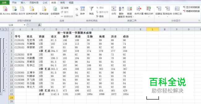 点击“确定”按钮后,就得出了分类汇总的结果。